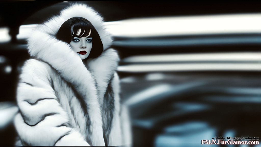 Notes: Photoshop postwork for cleanup and tilt-shift effects. The prompt underwent some testing, and the results rely on low-strength initialization images. Clearly, despite said testing, nothing reliably produced signature Cruella hair coloring.