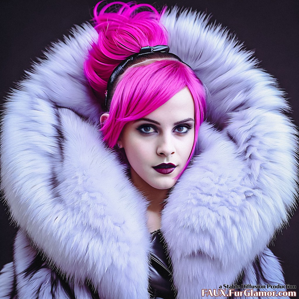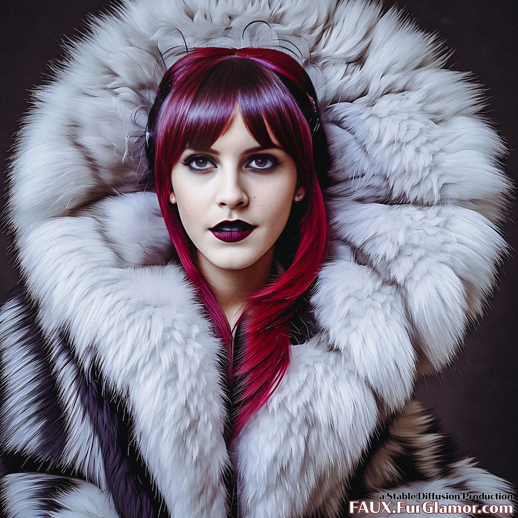 In this alternate timeline, popular actress Emma Watson is known for her iconic personal style of pastel goth and huge fox coats. She inspires millions of copycat looks and generally is cast as herself in most of her movies.
