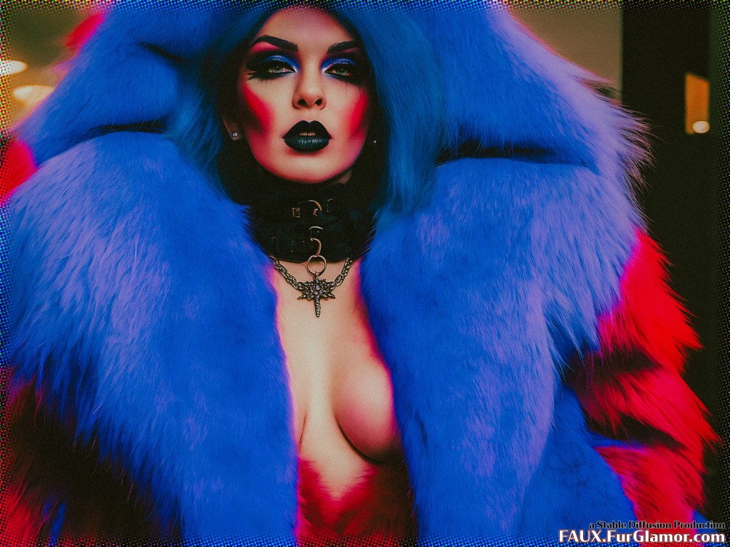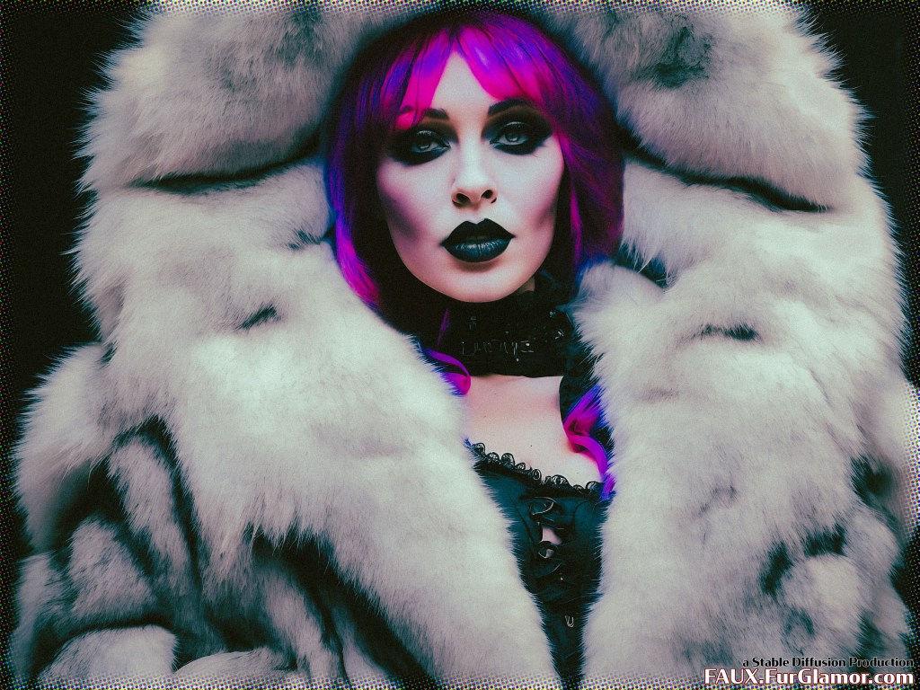 A glimpse at the alternative timeline where actress Lindsay Lohan “retired” to become a goth IG influencer known for her wardrobe of massive, brightly colored fox coats.